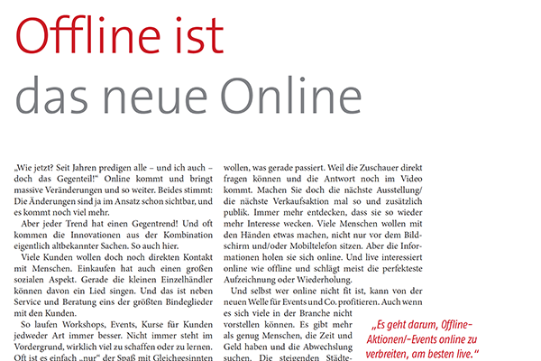 „Wie jetzt? Seit Jahren predigen alle – und ich auch – doch das Gegenteil!“ Online kommt und bringt massive Veränderungen und so weiter. Beides stimmt: Die Änderungen sind ja im Ansatz schon sichtbar, und es kommt noch viel mehr.